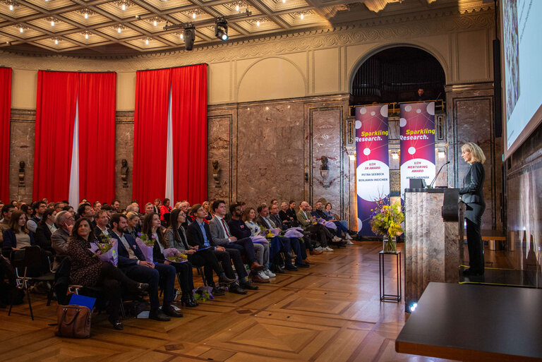 Before proceeding with the award ceremony, Stark welcomed Pascal Gygax, a psycholinguist and psychologist from the University of Fribourg who received the prestigious Marcel Benoist Prize last year – the most significant prize in the Swiss scientific community. Gygax received his award for his work on masculinized language and how it influences our perception of the world.