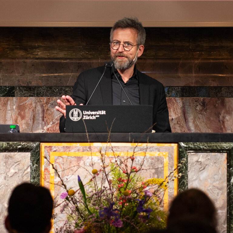 Although cold and wet February weather prevailed outside, a festive atmosphere spread inside the lecture hall of UZH’s main building on Thursday evening on the 6 February 2025. Elisabeth Stark, Vice President Research, welcomed researchers and numerous guests to the Sparkling Research gala. For her introduction, she highlighted UZH’s “excellent research”, which is reflected in areas such as the five ongoing University Research Priority Programs and the UZH Space Hub in Dübendorf, which managed to bring the space company Starlab Space on board at the end of last year.